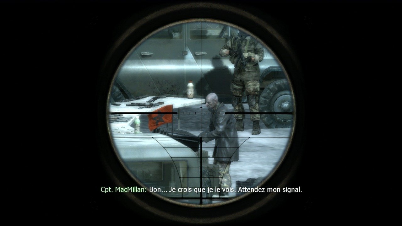 Call of Duty 4 se permet même d'introduire des phases d'infiltration (un niveau entier est carrément construit sur ce thème). Et d'ordinaire, mis à part les jeux entièrement axés sur ce type de gameplay, je déteste quand un titre d'un genre différent fourre une phase façon jeu d'infiltration, mais là, pour le coup, c'est tellement bien fait, intuitif et intelligent que je ne peux que m'incliner.