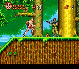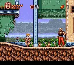 En fait il bossait sur le jeu, lorsque Virgin le balança sur le développement d'Aladdin. Il aurait du le finir ensuite mais a préféré fonder sa propre boite. La version Megadrive est assez différente. Bien plus belle déjà. Les couleurs pètent, il y a des tonnes de petits détails en plus etc ... Il possible de balancer des bananes sur les ennemis pour les vaincre sur MD. Les niveaux diffèrent également et sont moins variés dans leurs environnements sur la version MD. Apparemment la version megadrive est en grande partie basée sur le boulot de Perry, alors que la version Snes a été remaniée. |