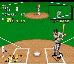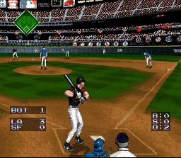 Ce 2ème jeu sponsorisé par Ken Griffey Jr, la star des Mariners de Seattle, a du fortement impressioner à l'époque. Graphiquement c'est certainement le plus beau jeu du genre sur Snes. Pas étonnant puisque c'est l'oeuvre de Rare qui réutilise ici encore les mêmes techniques employées sur Donkey Kong Country et Killer Instinct. L'animation est aussi très réussie et le tout est mis en valeur par quelques mouvements de caméra qui ont vraiment la classe pour un jeu 16 bits, je pense surtout à l'effet de travelling utilisé quand le pitcheur se tourne vers les bases avec les boutons L et R. Ici encore pas le licence (pour les joueurs) mais de nombreux modes de jeu (incluant un concours de homerun) et tous les stades et logos des vraies équipes encore une fois fidèlement restitués. Le gameplay est le même que dans l'autre jeu Ken Griffey mais est moins "arcade". Ainsi la balle fuse moins vite, le pitcheur peut moins donner d'effet et le batteur a un peu plus de mal à frapper correctement. Plus réaliste ? Oui. Plus amusant ? Non. Ca reste tout de même abordable pour tous et fun si on aime le genre, mais il y a pas photo on s'éclate beaucoup plus avec le 1er jeu. D'autant que les graphismes, aussi réussis soient-ils, vieillissent moins bien que le style plus simpliste et cartoon. De plus l'humour du 1er jeu (les animations marrantes) a hélas disparu. Celà reste un bon jeu de baseball tout de même, mais pas le meilleur de la console. A noter une fonction interessante en défense : la possibilité avec le bouton X au lieu du bouton B de relancer la balle plus vite mais de façon moins précise : une arme à double-tranchant à n'utiliser qu'avec les meilleurs joueurs de l'équipe. 2.5/5