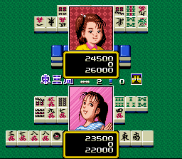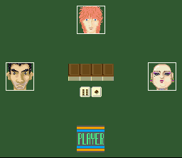 Ce soft de mahjong peut prétendre au titre de plus laid représentant du genre sur la 16 bits de Nintendo. Regardez moi ça : même les personnages apparaissant dans les petits portraits sont pour la plupart victime d'un design qu'on réserve habituellement aux bande-dessinées bon marché venues d'on ne sait ou et vendues dans les solderies. La musique d'intro insipide ne fait que renforcer la mauvaise impression technique et les quelques voix digitalisées tentant vainement d'égayer l'ensemble ne rattrapent rien.