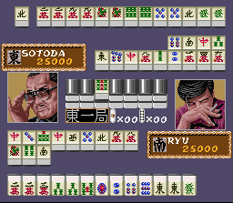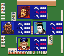 Ce jeu de mahjong reprend pour thême le célèbre conte asiatique "Le voyage en occident", tout comme Janyuuki Gokuu Randa vu en page 55. Les différents adversaires à affronter sont tous tirés de l'oeuvre et sont représentés par des illustrations au style graphique très interessant, détaillé et sobre à la fois, bien différent de ce qu'on voit habituellement dans les jeux-video de la Snes.