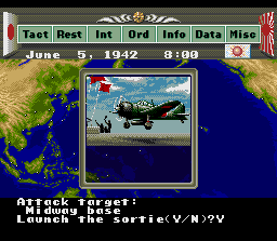 Prenant place pendant la même période historique, ce deuxième épisode propose 10 scenarios, la plupart identiques dans leur contexte à ceux du 1er jeu. L'interface a été revue : on ne choisit plus directement les menus en les mettant en surbrillance, mais en cliquant dessus avec un curseur, ce qui n'est pas franchement l'idéal au pad. Des améliorations importantes ont été apportées à la mise en scène du conflit avec les personnages historiques tels que Nimitz ou Yamamoto mis en valeur par l'intermédiaire de courts dialogues avec leurs généraux. De la même manière, les infos importantes ne seront pas seulement transmises par de nouveaux chiffres dans des menus mais aussi par l'apparition à l'écran de soldats venant faire le point sur la situation. La représentation des combats est également toute autre : fini les petites unités à déplacer sur une carte. Cette fois on se contente de donner des ordres très précis à ses différentes unités (aviation, artillerie ...) et on assiste à leurs actions par l'intermédiaire de cinématiques assez bien réalisées. Mieux réalisé que le 1er épisode avec lequel il fait un peu double emploi, ce titre est globalement supérieur mais mieux vaut essayer les 2 pour voir lequel a l'interface qui vous semble la mieux appropriée. Ou alors, peut-être préfererez vous jouer au 4ème épisode sorti sur Playstation 2 et disponible en version européenne ? (personellement je trouve les épisodes Snes plus jolis à regarder !) ASSEZ BIEN