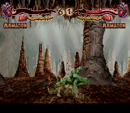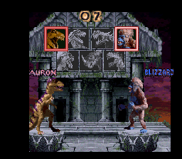 Conversion du jeu d'arcade d'Atari Games, Primal Rage est un jeu de baston gore dans lequel s'affrontent des créatures préhistoriques. Autant dire qu'il est taillé sur mesure pour le public ado américain des années 90 fans de Mortal Kombat et de Jurassic Park ! 7 bestioles sont disponibles et on combat avec un système à 4 boutons, sauf que pour la plupart des dinos, les 2 coups de poing (faible, fort) sont ici des coups portés avec les machoires assérées ! Les coups spéciaux sont de la partie et s'exécutent en maintenant un ou plusieurs boutons et en réalisant une manipulation de type "arrière-avant", quart-de-tour ... etc ... C'est pas ce qu'on a vu de plus instinctif comme système. Chaque combattant dispose d'une barre de vie et d'une barre de "stun" (il est étourdi s'il se prend trop de coups d'affilée). Petite originalité sympathique : des humains se baladent parfois près des combattants et on regagne de l'énergie si on parvient à les croquer ! Enfin les très gores (et parfois très droles ici) fatalités héritées de Mortal Kombat sont présentes. Si la jouabilité est relativement correcte, la réalisation fait de la peine quand on connait l'arcade. Les sprites réalisés à partir de photos digitalisées sont très petits et surtout très moches. Les enchainements de coups sont certes fluides, la détection des collisions est bonne, bref ça bouge plutot bien, mais l'action reste confuse à cause des graphismes qui réduisent les 2 sprites au contact à une bouillie de pixels. Et puis malgré la touche originale, ça manque un peu de charisme tout ce bestiaire. Si ce titre plutot moyen vous interesse, lancez le sous Mame ou par l'intermédiaire de la compile Midway volume 2, mais évitez cette version Snes qui est techniquement ratée. MEDIOCRE
