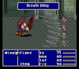 RPG japonais emblématique de Square Soft, cet épisode de Final Fantasy (le 1er sur Snes) marque un tournant dans la saga mais aussi, même si c'est débatable, dans l'évolution du genre et le développement de son succés hors du Japon. Car c'est l'un des premiers RPG dans lequel l'accent est mis à ce point sur l'histoire et les personnages. Une tentative avait déjà été faite pour le 2ème épisode de la saga sur Famicom, mais ici on bénéficie d'un casting beaucoup plus étendu, de plus de péripéties et surtout d'une mise en scène de l'histoire mise en valeur par de nombreux dialogues et par une composition musicale excellente et très variée (à défaut de graphismes assez sommaires mais heureusement pas horribles). Le héros, Cecil, est le capitaine d'une unité d'élite au service de Baron, un royaume qui reigne sur un monde d'héroic-fantasy incorporant un peu de technologie, grâce à sa puissance militaire et ses puissants airships (bateaux volants emblèmatiques de la série). Mais suite à une mission ou il doit s'emparer de force d'un crystal magique gardé par une nation pacifique, Cecil remet en cause la stratégie du roi. Ce dernier le punit en le destituant de son poste et en l'envoyant accomplir une mission dans laquelle il devra délivrer un "paquet" à un pays voisin. A l'insu de Cecil, le paquet se révèlera être une bombe destinée à éliminer le puissant, mais pacifique, peuple des invocateurs. Cecil en réchappera et se lancera dans une longue quête en vue d'arrêter le chaos qui se répend sur le monde et découvrir qui est celui qui manipule dans l'ombre la destinée de Baron. En plus de disposer d'un scénario beaucoup plus fouillé que la moyenne de l'époque, FF4 introduit également de nombreux personnages interessants. Ainsi, en plus de Cecil et de sa quête initiatique, on trouve Rosa, sa fiancée qui ne se contente pas QUE de se faire enlever et de servir d'appat (mais on y échappe pas quand même ^^), Rydia, une enfant du peuple des invocateurs dont la mère est tuée par Cecil mais qui se joint malgré tout à ce dernier pour l'aider à nettoyer ses crimes, Tellah un vieux mage prêt à tout pour venger sa fille qu'un prince a séduit et n'a pas su protéger, et surtout Kain, un chevalier-dragon ami d'enfance du héros qui, rongé par les émotions provoquées par son amour à sens unique pour Rosa, sera au cœur de quelques rebondissements savoureux dans cette histoire. Le système de jeu lui est des plus classiques, surtout comparé aux 2 épisodes précédents qui tentaient de s'éloigner du modèle "Dragon Quest". Des combats aléatoires réglés au tour par tour, des points d'exp à récolter pour monter en niveau et acquérir de nouveaux sorts … etc … Mais c'est aussi l'épisode dans lequel on a le plus de persos qui combattent simultanément dans notre équipe (5). Chaque perso, imposé par le déroulement de l'histoire, possède une ou plusieurs compétences uniques, ce qui souligne encore plus l'accent mis sur les protagonistes et l'attachement du joueur à ces derniers. Un mot sur la difficulté : lorsque Final Fantasy 4 et sorti en version US (sous le nom de Final Fantasy 2), la difficulté a été revue à la baisse avec des ennemis moins balaizes et, surtout, moins de combats aléatoires. Alors que de nombreux "hardcore-gamers" ont crié au scandale (également à cause de petites censures et autres modifications minimes), moi je me réjouis de ce choix, d'une part parce que je suis plus sensible à l'histoire/mise en scène d'un RPG qu'à son système de combat, et d'autre part parce que les combats de la version japonaise sont définitivement TROP nombreux. A noter que le jeu est aussi sorti au Japon dans une version dite "easy-type" avec la difficulté allégée de la version US. FF4 est donc un RPG très agréable pour peu qu'on accroche à ses personnages, ce qui est mon cas. Vaut-il la peine d'être pratiqué en 2009 dans cette version Snes (version jp traduite pour les masos ou version US pour les "ptit-bras" comme moi ^^), sachant qu'il a ensuite bénéficié de plusieurs adaptations/remakes ? Je dirais que oui car je trouve les défauts suivants aux autres versions : des chargements et une trop grande difficulté pour la version Playstation (en contrepartie : quelques cinématiques et une meilleure traduction anglaise), des musiques au rendu moins agréable et une trop grande difficulté pour la version GBA (en contrepartie : du contenu supplémentaire). En effet ces 2 versions ont été construites à partie de la version originale japonaise avec ses nombreux combats et perso je préfère la version "light" sur Snes en US. Je ne me prononcerai pas sur la version DS que je n'ai jamais pratiqué. 4/5 En complément de cette (trop longue) présentation, n'hésitez pas à lire l'article dédié au jeu sur GP ici : http://www.grospixels.com/site/ff4.php ainsi que la partie du dossier FF qui lui est consacré (lien en fin de post). Final Fantasy 5 (Square Soft - 1992)