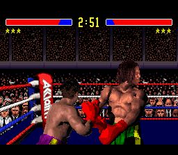 George Foreman sert de mascotte dans ce jeu de boxe ou il est le seul sportif qui ne soit pas fictif. Le boxeur qu'on dirige est vu de dos et on peut faire des match d'exibition ou un mode carrière qui n'est qu'une suite de combats sans scénario ni entrainement ni rien du tout. Les graphismes des 2 combattants sont assez impressionants et les animations correctes mais la maniabilité laisse à désirer avec des commandes qui répondent mal et des coups qui sortent souvent avec un temps de retard, surtout les esquives. Le jeu manque surtout d'ambiance et de punch (bin oui) et on s'ennuie très rapidement. Dans le genre (et avec cette même représentation) on préfèrera largement Boxing Legends of the Ring présenté en page 13. 1/5