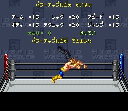 Ce jeu de catch injustement méconnu mérite largement qu'on parle un peu de lui. Masakatsu Funaki est un catcheur japonais célèbre pour être l'un des fondateurs de la fédération Pancrase qui est une league d'arts martiaux ou les combats ne sont pas "truqués" mais suivent cependant les règles du catch (en fait plus maintenant, les règles ont changées et sont similaires à l'UFC). Dans le jeu, on peut incarner une dizaine de combattants (fictifs mais inspirés de vrais catcheurs et/ou combattants d'arts martiaux) aux styles très différents. Les combats se déroulent dans des environnements variés, ce qui est une des grandes forces du jeu. On trouve un ring de catch classique mais aussi une rue mal fâmée ou le public vient parfois s'incruster pour donner des coups, ou d'autres décors dans lesquels on peut gagner par "ring out" en balançant son adversaire dans un précipice (mention spéciale au stage avec le ring qui se dégrade au fur et à mesure des chocs jusqu'à ce qu'on fasse passer son adversaire à travers). Les combats sont montrés de profil avec possibilité de se déplacer un peu en profondeur comme dans un beat-them-all, mais on a moins de liberté de déplacement que dans un jeu de catch plus classique. La jouabilité rappelle la série des Muscle Bomber de Capcom (Saturday Night Masters) avec des coups portés aussi important que les prises de catch et la possibilité de courir en appuyant 2 fois dans la même direction. Mais Hybrid Wrestler dispose d'une jouabilité plus profonde et de beaucoup plus de coups à la disposition du joueur. Les boutons Y, X et B servent à frapper et on obtient des coups différents en fonction de la distance. Avec une direction, ces boutons permettent de faire des prises au contact. A sert à parer un coup, mais avec une direction, ce bouton sert également à esquiver en avançant ou en reculant, ce qui est une des clés du gameplay car ce mouvement placé au bon moment permet de passer à travers un coup de l'adversaire pour le saisir. Le bouton R a l'air de faire la même chose que avant + A tandis que le bouton L ne sert (apparement) qu'à certains persos pour réaliser des actions spéciques (le mexicain rebondit dans les cordes, le clone de Ric Flair implore son adversiare, le clone de Bruiser Brody sort une arme ...). En maintenant L et R suffisemment longtemps, on passe en mode "boost" pendant quelques instants pour faire plus de dégâts. A noter qu'on ne peut jouer qu'en 1 contre 1 (pas de matches par équipe) et que tous les matches sont commentés par un présentateur qui apparait dans une fenêtre en bas de l'écran. En plus des matches d'exhibition et des tournois, il y a le mode de jeu principal dans lequel on crée un catcheur et on suit sa carrière (sur les screenshots, je me suis créé un "Tiger Mask" ^^ ). La phase de création permettra aux plus entreprenant de définir l'apparence de son perso mais aussi ses caractéristiques et ses coups. Ensuite on fait tout une suite de matches et, chose amusante, on peut mettre fin à sa carrière nous même en prenant notre retraite, mais si avant ça on s'est marié et on a eu un enfant, on peut apprendre le catch à son fils et continuer à jouer avec lui ! Ce jeu est vraiment très riche, beaucoup plus qu'il n'y parait à la première partie, et je suis TRES loin d'avoir tout compris. Par exemple je ne sais pas comment faire les "reversal" ou échapper efficacement à une prise de soumission, ou placer les super coups spéciaux. Je n'ai malheureusement trouvé AUCUNE info sur le jeu sur internet. J'aimerais beaucoup mettre la main sur un Faq ou la notice du jeu ... Graphiquement correct (les animations des prises sont très réussies), à la fois jeu de catch et jeu de baston, varié, technique et fun, Funaki Masakatsu Hybrid Wrestler mélange de nombreux éléments venus de plusieurs jeux du genre comme Fire Pro Wrestling ou Muscle Bomber et même (avec pas mal d'années d'avance) la série des Def Jam. Je le recommande à tous les fans de catch en 2D. A noter l'existence d'un patch qui traduit pas mal de choses en anglais (même les commentaires pendant les combats), il n'y manque que quelques menus. (les screenshots postés ici ont été pris avant que je ne mette la main sur ce patch, ce qui explique les textes en japonais). 3.5/5