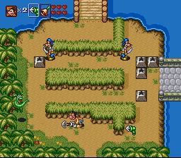 Jouable à deux simultanément et toujours représenté en vue de dessus avec des graphismes très réussis dans le plus pur style "Capcom fait un Disney", Goof Troop est un jeu d'action, d'exploration et de résolution d'enigmes mettant en scène les personnages Disney que sont Dingo et son fils Max. Ces derniers doivent trouver comment traverser de nombreux écrans remplis de pirates à éliminer, de cléfs à trouver et d'interrupteurs à activer pour secourir leurs amis. Il est possible de lancer des objets trouvés en route, de pousser des blocs façon Pengo et d'utiliser des objets comme des grappins ayant diverses fonctions comme attraper des objets distants, pousser les ennemis ou créer des ponts de corde. Très amusant, abordable, jouable et proposant des petits puzzles sympas et jamais trop difficiles, Goof Troop devient excellent quand on le pratique en duo. Les seuls reproches qu'on peut lui faire c'est que chaque fois qu'on revient sur ses pas, il faut refaire les enigmes déjà réussies précédemment, ce qui ne sert qu'à prolonger une durée de vie très courte (le jeu est facile et dispose d'assez peu de niveaux : je me souviens qu'on le finissait toujours en 1 après-midi avec mon cousin !). C'est un jeu que j'aime beaucoup et que je recommande d'essayer à tous ceux qui ne le connaissent pas. 4/5 Un article sur GP ici : http://www.grospixels.com/site/gooftroop.php