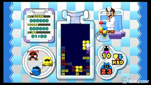 Sur WiiWare on trouvera aussi parmi les premiers jeux une version de Dr Mario jouable à plusieurs en ligne ! Dr mario étant un de mes puzzles games favori, je suis aux anges !
