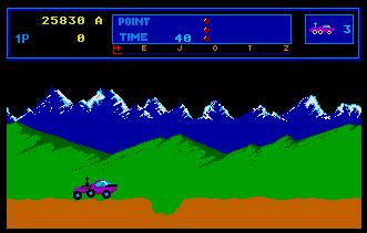 L'action se déroule dans le futur, il faut parcourir un monde en 2D, le décor est plutot du genre planète extra terrestre. On tire de minuscules missiles.