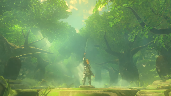 Car le jeu est beau, incroyablement beau. Son style graphique persiste dans la direction initée par Skyward Sword, et qui demeurait sa meilleure réussite : à un dessin plutôt réaliste et détaillé s'ajoute une passe de cel-shading du meilleur effet qui augmente les contrastes et rend les couleurs particulières éclatantes. Le travail sur la lumière bénéficie notablement de ces effets, et il suffit d'attendre près d'une source de chaleur, d'un feu ou d'un incendie, ou encore de laisser la lumière ou du jour décliner tranquillement, pour voir tout un nuancier se transformer sous nos yeux ravis. C'est cependant l'animation, et ses détails, que je retiendrai le plus ici. Link, tout d'abord, est criant de vie : il peine en escaladant des murs raides, grelotte de froid ou souffre de la chaleur caniculaire, est ravi en cuisinant. Mais tous les personnages réagissent à nos actions et au monde autour d'eux : ils se plaignent de la pluie et courent se mettre à l'abri si besoin, se mettent en garde ou se protègent quand nous utilisons une épée près d'eux, commentent notre tenue ou notre équipement. Les ennemis ne sont pas en reste : ils hurlent agressivement lorsqu'ils nous touchent, se gênent et s'organisent, certains géants balancent leurs petits camarades sur nous s'ils ne trouvent pas d'armes à leur goût.