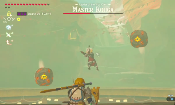 Le second, qui est l'un de mes préférés, est le prince Sidon, que l'on a évoqué précédemment avec les Zoras. Sa volonté inébranlable, son sourire lumineux et son optimisme incontestable, sa bonne humeur en font un personnage cruellement attachant et un ami de la première heure que l'on aime toujours à retrouver. Sans doute cependant, celui qui a particulièrement plu et qui est au cœur d'une des quêtes les plus passionnantes du jeu, c'est le Grand Kohga. Il s'agit du chef suprême des Yigas, des Sheikahs dissidents qui ont fondé leur propre armée et qui se dédient notamment à la mort du héros légendaire. Ils nous tendent d'ailleurs parfois des embuscades sur notre chemin, en se déguisant en passants inoffensifs. Il faudra s'infiltrer dans leur repaire lors de la quête des Gerudos, et affronter finalement Kohga dans un duel décisif. Le ridicule, cependant, de sa stature, son attitude théâtrale et sa méchanceté de bazar le canonisent dans le panthéon des boss les plus truculents de l'histoire du jeu vidéo, tant et si bien que malgré son peu de présence à l'écran, il le crève véritablement.