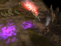 Plate-forme d'Artillerie : Ouvre le feu sur toute unité terrestre passant à portée. Son canon très puissant fait de gros dégâts à toute unité.