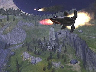 Réalisation, level-design![]() Ce n'est un secret pour personne : Halo bénéficie d'une réalisation sensationnelle. Sur le plan graphique, il s'est imposé dès sa sortie comme le FPS sur console auquel on comparerait tous ceux qui allait sortir par la suite. La surface du Halo, petit coin de paradis, permet d'admirer des décors somptueux, ainsi que le survol de vaisseaux Covenant impressionnants. Les intérieurs (structures internes du Halo, vaisseau Covenant infiltré, Pillar of Automn) sont un peu moins réussis : une succession de couloirs qui se ressemblent tous, et dans lesquels il est parfois difficile de se repérer (les portes et les murs ont la même apparence !). En ce qui concerne les personnages (ennemis ou alliés) et les effets spéciaux lors des combats, c'est un régal. ![]() Malgré tout, il est aisé de voir dans quels secteurs Bungie a du grapiller du temps de développement. Ainsi, le scénario est conçu (vous l'avez peut-être noté si vous avez VRAIMENT suivi mon résumé :) ) pour que l'on passe deux fois dans chaque décor, et la plupart des missions consistent à infiltrer un endroit, puis en ressortir une fois l'objectif atteint. Les ennemis tués ont alors été remplacés par d'autres ! D'autre part les intérieurs ont en général une architecture symétrique : les sorties ressemblent aux entrées, ce qui ajoute au sentiment de répétition. Heureusement, lorsqu'on revient dans une salle, une série de couloirs ou une plaine, il se passe toujours quelque chose pour que l'intérêt soit relancé. D'autre part, le niveau le plus long et répétitif, la Bibliothèque, ne sera visité qu'une seule fois (certains ont détesté ce passage, mais à titre personnel je le considère comme un grand moment, ne serait-ce que pour le décalage entre les combats contre des dizaines d'infectés et les commentaires enjoués de 343 Guilty Spark – d'un point de vue mise en scène, c'est une trouvaille remarquable). ![]() La bande sonore est géniale. Les dialogues, très nombreux y compris pendant l'action, plongent le joueur dans l'ambiance. Leur côté parodique est souvent bienvenu : on se régale des répliques des stupides Grunts, même en version française, et les Marines lancent quelques punch-lines débiles à la Michael Bay pendant les combats. Ces dialogues ne sont pas simplement illustratifs, ils peuvent aussi aider. En entendant un Marine se plaindre qu'on a tué un Elite à sa place, on aura la confirmation que celui-ci est mort. D'autres fois, c'est en entendant s'écrier "encore un ennemi !", ou "là-bas !" qu'on sera prévenu que des Covenants sont dans le secteur (et accessoirement qu'on s'est fait repérer !). ![]() ![]() La bande musicale, signée O'Donnell et Salvatori, est très présente, et d'une efficacité remarquable. Si une adaptation filmique devait être réalisée un jour, ces musiques pourraient être réutilisées telles quelles. Le thème principal, qui mêle influences celtiques et percussions tribales, est à classer dans les meilleurs souvenirs que laisse le jeu. Pendant les phases d'action les plus intenses, d'autres musiques interviennent, de manière parfois surprenante : l'effet est saisissant, et l'adrénaline monte en flêche. Alors qu'un Half-life était presque totalement dépourvu de musique pour plus d'immersion et de réalisme, Halo, dont l'inspiration formelle est ouvertement cinématographique, en fait une de ses composantes essentielles. Halo et l'emergent gameplay![]() ![]() Il ne sera pas ici question de discourir longuement sur cette notion vidéo-ludique par essence, dont les critiques anglo-saxons raffolent et vous parleront bien mieux que moi, mais plutôt d'en mentionner l'existence. Dans Halo, 3 ethnies sont en présence, dont deux d'origine extra-terrestres, aux capacités physiques et technologiques bien complémentaires, qui disposent chacune de leur équipement et peuvent s'en échanger une partie. Sur le papier les forces s'équilibrent à peu près, et la topographie du terrain influe sur le déroulement des combats avec en toile de fond un scénario qui définit précisément les tenants et aboutissants du conflit... On a là les composantes essentielles d'un bon Starcraft-like. Même sous sa forme actuelle, Halo trahit ses origines de RTS, car c'est un jeu éminemment guerrier, et surtout un jeu dans lequel un millier de choses étonnantes peuvent se produire. Le genre RTS trouve son intérêt dans le fait que chaque partie est totalement différente de la précédente. Les paramètres à gérer sont innombrables, les combinaisons possibles aussi. On imagine volontiers que les développeurs qui créent ce genre de titres et les bêta-testeurs auxquels ils font appel passent des centaines d'heures à vérifier que tout est bien équilibré. Mais peuvent-ils jamais être sûrs d'avoir tout envisagé, tout imaginé ? Évidemment non. Lorsque les joueurs les relaieront, ils feront face à nombre de situations que personne n'aurait pu prévoir. Le jeu atteint alors un degré supérieur dans l'interactivité, et le fait que tout y paraisse possible sera sa qualité première. C'est cela qu'on appelle le gameplay émergent, une sorte de délicieuse incertitude porteuse de petits miracles. Le RTS est un bon exemple pour décrire ce phénomène, car c'est, lorsqu'on y joue en solo, un genre dont l'intérêt repose avant tout sur une intelligence artificielle solide. Et il est évident que plus une IA est élaborée, et plus son comportement sera imprévisible et varié. Les FPS sont aussi une bonne source d'emergent gameplay : avec une action qui exploite totalement des environnements en 3D, sans souci de positionnement de caméra, ils semblent totalement ouverts. Halo étant un FPS qui n'a pas totalement perdu son âme de RTS est donc, rien d'étonnant à cela, un des jeux les plus "emergent" qui soient sortis ces dernières années. ![]() Mais ce n'est pas tout : depuis quelques années les jeux d'action en 3D