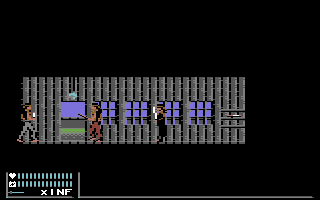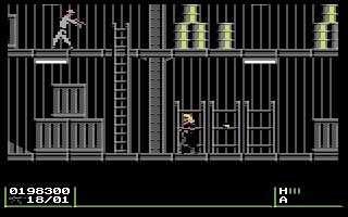 Tout d'abord, l'ergonomie du jeu est exemplaire puisqu'il ne fait plus du tout usage du clavier. On peut ainsi toujours diriger son personnage, le faire s'accroupir, se déplacer accroupi (ça c'est nouveau et ça permet de se déplacer sans se faire repérer), sauter, ouvrir des portes, grimper aux échelles, tirer dans 8 directions (également en sautant), ramasser et utiliser des objets, ou encore dialoguer et tout se fait uniquement avec le joystick et un bouton. En maintenant ce dernier appuyé, on accède à l'inventaire, ce qui met l'action en pause, permettant ainsi d'accéder tranquillement à ces fameux médikits sans se faire occire de tous côtés comme dans le jeu précédent. À partir de l'inventaire, on accède à d'autres sous-menus pour sauvegarder (ce qui est possible à tous moments, et directement sur la disquette du jeu) ou consulter l'écran de statut montrant l'évolution de son héros.
