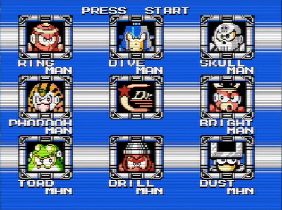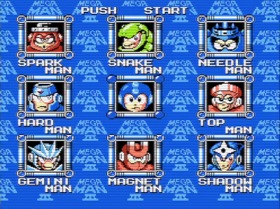Les stages de Top Man et de Gemini Man sont sans doute mes préférés, l'un pour ses reflets de terrarium géants, l'autre pour son côté organique rappelant, de loin, Metroid, mais tous les stages sont particulièrement réussis.