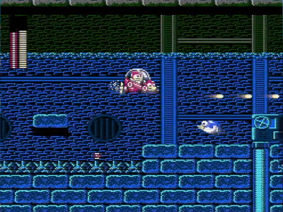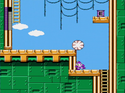 Le stage de Shadow Man se tapisse de pics mortels, tandis qu'Air Man est bien décidé à en découdre, et il garde l'unique point de contrôle du stage... N'espérez pas le tuer aussi rapidement que jadis !
