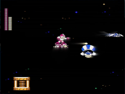 Eh, z'avez vu mon costume pour la kermesse de l'école ? Bah, au moins les étoiles sont jolies... (Mega Man 5)