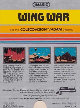 [Mode McGuyver ON] Quand j'étais môme, et que j'avais ma Coleco, il y avait plein de jeux auxquels je jouais dans les cafés et qui étaient adaptés sur la console (Donkey Kong, Space Panic...). D'autres étaient soit des adaptations de jeux d'arcade que je ne connaissais alors pas (Venture, Zaxxon...), soit des jeux originaux pour la Coleco (les Schtroumpfs). Quoi qu'il en soit, je dévorais toutes les informations écrites par les journalistes de Tilt sur chaque jeu Coleco, jusqu'à les connaître par cœur. Quand je pouvais, j'essayais le jeu en magasin ou je tentais d'y jouer en version arcade. Bref, je me débrouillais pour vite arriver à savoir de quel bois était fait tel ou tel jeu sur Coleco. Sauf un : Wing War, dont j'avais lu le test dans le Tilt n°12 en 1984. Dire que j'avais adoré le test en question est un euphémisme : je VOULAIS ce jeu. Le dragon sur l'image, déjà, enflammait mon imagination. Le scénario, intéressant et plus complexe que ceux des autres jeux que j'avais déjà pratiqués, me paraissait fantastique. Les commentaires du testeur ("tout est presque parfait") terminaient de me faire comprendre que oui, Wing War était un GRAND jeu.