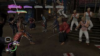 ![]() Fait marquant, je n'ai presque jamais parlé au cours de ce dossier des jeux et de l'époque tournant autour de la série, si ce n'est dans l'avant-propos où j'aborde rapidement la question des open-worlds et des problématiques qu'ils engendrent. L'époque concernée par ce modeste dossier, entre 2001 et 2012 donc, est pourtant le véritable départ du genre à grande échelle, qui nous offre une tripotée de jeux venant de tous studios, de tous horizons. Et pourtant c'est un fait, les Way of the Samuraï sont pour ainsi dire seuls sur leur marché... ce qui est pratique d'un point de vue rédactionnel puisque ça m'évite de m'attarder sur la situation périphérique au jeu à chaque fois ! Cependant, ma fainéantise va être mise à rude épreuve, puisque le cas de Way of the Samuraï 4 (WS4) est encore plus atypique que les autres. C'est aussi, histoire d'annoncer la couleur, mon épisode préféré avec le deuxième. ![]() ![]() La série a toujours assumé et même revendiqué un aspect fantasque, voire carrément comique. Mais ça restait circonscrit à certaines situations précises, et ces aspects n'étaient clairement pas mis en avant lors de la promotion (presque inexistante) des jeux antérieurs. On peut aller chercher des éléments de réponse du côté du parcours de la société Acquire qui a pris du galon depuis. Elle ne se contente pas de continuer à développer quelques épisodes de Tenchu, elle a démarré une autre série, Shinobido, mais aussi – et surtout – deux séries totalement déjantées : What did I do to deserve this, my Lord? ainsi que Akiba's Strip. La première est une sorte de mutation de jeu de puzzle où l'on joue le méchant dans une parodie de JRPG et de gestion décomplexée, quant à la seconde, c'est un jeu d'action / aventure dont le but est de neutraliser des ennemis qui ont pris possession des habitants du quartier d'Akihabara, mais vulnérables à la lumière du soleil, en leur retirant leurs vêtements ! Une bonne grosse dose d'humour et de second degré est nécessaire afin d'apprécier ces jeux, certes, mais ça souligne surtout à quel point Acquire a pris de l'assurance. Il faut dire que leur récent partenariat avec la société Nippon Ichi, spécialiste en TRPG japonais à l'humour omniprésent tel Disgaea, leur a ouvert nombre de portes et les a certainement rassurés quant à leur potentiel et leur talent. ![]() ![]() C'est un fait qui ne se voit pas forcément dans les prémisses du jeu. On est au Japon en 1904, les navires américains, britanniques et hollandais ont amarré dans plusieurs ports du pays, signent plusieurs traités commerciaux (à leur avantage, ça se répercutera sur l'histoire du pays...) et propagent la culture occidentale au cœur d'un peuple pris de court devant un tel changement. Dans la ville portuaire d’Amihama, l'agitation règne : un navire noir britannique s'apprête à accoster. Ce n'est pas la première incursion des Anglais, loin de là, puisqu'ils ont déjà un consulat et un quartier qui leur est dédié. En revanche, l'ambassadrice Laura Lita, accompagnée du comte Jet Jenkins, vient proposer un accord visant à mettre en place un partenariat entre les deux pays concernant la fabrication et la vente de la soie. Une occasion en or, qui suscite des réactions diamétralement opposées. ...et alors que le prochain navire anglais débarque bientôt, une petite pirogue accoste l'air de rien à Amihama. C'est ainsi que vous mettez le pied pour la première fois sur le port, et constatez que quelques mètres plus loin, un attroupement s'est formé... ![]() ![]() Il ne faut pas longtemps, quelques minutes tout au plus, pour se sentir perdu dans WS4. Il y a une ambiance un peu différente, un peu moins de mépris général à votre égard, tout juste de l'indifférence, et les colons anglais sont fascinés par les samouraïs. Mais la sensation est plus profonde que cela. Ceci vaut peut-être plus pour les habitués que pour les nouveaux venus d'ailleurs, car une grosse partie de l'interface a changé. Ce n'est pas pour rien que, très vite, le jeu propose des didacticiels afin d'expliquer les boutons et les actions possibles. Tout d'abord, la jauge de durabilité et de chauffe de l'arme a complètement disparu, au profit de deux autres jauges : la vie en vert et l'endurance (appelée « Vitality » dans le jeu) en mauve. C'est autour de cette nouvelle venue que s'articule désormais le gameplay, elle ne cesse de diminuer à chaque fois que vous vous battez, que vous faites un voyage rapide sur la carte ou d'autres actions d'importance. Or, tant que vous disposez ne serait-ce que d'un brin d'endurance et que vous ne portez pas de coup (ni n'en recevez), votre barre de vie se régénère toute seule ! Mais si elle est vide, ce bénéfice disparaît. Votre première préoccupation sera de maintenir cette jauge à un niveau raisonnable, et il est fort probable que vos fouilles et une partie de vos économies soient consacrées... à manger ! Manger en effet remonte votre endurance, en plus de vous octroyer des bonus à la récupération des jauges, entre autres. Le fait de retourner sa lame pour frapper avec le plat passe désormais par la touche L2 puis Croix, et a une toute autre utilité en plus du roleplay, puisqu'elle vide non pas la barre de vie adverse, mais son endurance. Il y a une troisième jauge cependant, située discrètement entre les deux autres, qui permet de déclencher une sorte de bref moment de surpuissance. Appelée ironiquement « Spring Harvest » (littéralement « récolte du printemps »...), on le déclenche en maintenant R1 tout en appuyant sur L1. Un petit flou artistique et une tirade moqueuse du personnage viennent confirmer l'activation, et l'on devient bien plus rapide, bien plus fort pendant un petit laps de temps. Une fois la jauge vidée, on se retrouve à genoux et à bout de forces pendant quelques secondes... ou on peut être aussi classe qu'un héros de film 