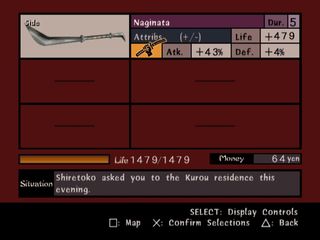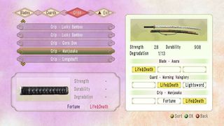 La première estimation est inutile à mon avis, et la dernière n'est possible que si l'on farme les missions de rédemption – ce qui est tout à fait possible, mais un peu barbant tout de même. La deuxième est en revanche tout à fait abordable à peu de frais, et donne une arme très équilibrée capable de vous emmener loin. La courtière d'Omiki, nommée Oryo, donne les petits boulots qui offrent le meilleur rapport difficulté / paiement, sans se mettre trop de monde à dos. Ceci dit, c'est une très bonne idée que d'obtenir la confiance des quatre courtiers d'Amana (on le sait quand ils paient 600 yens) car, une fois engagé le conflit ouvert entre les Fujimori et les Oka, leur dernière mission est... de les tuer ! Ils sont très forts mais donnent des armes uniques et puissantes. Ceci dit, je ne saurais que trop vous conseiller de ne pas travailler pour le village de Takatane, les jobs sont nuls et mal fichus ! Way of the Samuraï 4![]() ![]() Dans cet épisode, les moyens de truander le système de jeu sont bien moins nombreux... mais ils existent ! Votre première tâche va être d'augmenter la durabilité et l'attaque de votre sabre de base. Les personnes vous proposant des petits boulots sont indiquées par un panneau de bois cerclé d'une aura mauve sur la carte, mais presque n'importe qui peut vous donner une petite course à faire ! Vous ne devriez pas avoir trop de problèmes à atteindre les 2000 points de durabilité, et à dépasser les 50 en attaque. À partir de là, allez voir les magistrats, notamment un certain Sakotsu près de la demeure. Il a clairement un problème à gérer ses émotions, mais accepter ses missions consistant à tuer des yakuzas est une excellente idée, et ce pour plusieurs raisons : premièrement, cela va augmenter votre maîtrise du style de combat en cours ; deuxièmement, le nombre de victimes de votre arme va exploser ;troisièmement, ça paie pas trop mal, et vous pourrez ramasser les sabres de vos victimes et les vendre au forgeron ou à n'importe quel vendeur en ville (en mode Facile les sabres ramassés sur des troufions sont nuls) ;et quatrièmement, exterminer des criminels fait baisser le taux de criminalité, entraînant une baisse des coûts en magasin. Il n'y a que des avantages pour vous ! Vous devriez pouvoir monter votre sabre de base au-delà de 100 points d'attaque, et peut-être même l'estimer sur le nombre de victimes, ce qui vous fera un bon point de départ pour finir vos premières parties en mode Facile. Pour la suite en revanche, si vous tentez le mode Normal et supérieur, et plus encore la fin numéro 1, il vous faudra partir d'une arme avec un excellent bonus d'attaque de base (25 c'est très bien). Vous pouvez tout-à-fait vous contenter de refaire la même chose avec votre nouvelle arme, mais cette fois, au lieu de vendre les armes ramassées, choisissez l'option « Extract » du forgeron : il fera fondre la lame et vous donnera des bouts de métal (« Scrap Metal »). Vous pouvez les utiliser avec l'option « Recast » pour augmenter l'arme au-delà de son point de dégradation sans risque de la briser, et pour un prix très modique ! Simplement, plus vous faites « Recast » et plus il vous faudra de bouts de métal... Pour finir, vous vous apercevrez au fur et à mesure de votre progression qu'il y a une route cachée tout en bas du journal des événements. Elle mène aux fins numéro 1 et 10, et elles demandent certains prérequis précis qui concernent les « preuves de vie ». Je vous laisse le soin de mener votre enquête (ou de vous gâcher la surprise via un guide !) mais autant vous mettre en garde : ne la commencez pas sans une arme à 300 d'attaque (si possible avec « Life & Death »), un style d'arme dans lequel vous êtes parfaitement à l'aise, un style de combat à mains nues et la volonté d'en découdre ! Il y a une tonne de combats difficiles, les situations changent du tout au tout par rapport à la route « classique », mais le dénouement est génial, c'est le type de scénario pendant lequel on a constamment le sourire aux lèvres ! ConclusionCeci marque la fin provisoire de ce dossier : en effet, Acquire annonçait lors du TGS 2014 le cinquième épisode des Way of the Samuraï, sur PS Vita cette fois, mais nous restons sans nouvelle... Cependant, deux titres récents sur PS3 et PS Vita, Ukiyo no Shishi et Ukiyo no Roshi respectivement, semblent se placer comme des successeurs spirituels. Allez savoir, peut-être pourrais-je les ajouter le jour où ils connaîtront une localisation en occident ! Quoi qu'il en soit le dossier reste ouvert, mais en stand-by indéfini... Sources, remerciements, liens supplémentaires : Remerciements à Gamefaqs pour les captures d'écran de l'avant-propos