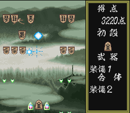 Un peu de fantaisie dans le monde très sérieux et austère des jeux de shougi mérite d'être signalé. Ici nous avons un soft bien présenté et disposant de menus joliment illustrés qui propose, bien entendu, de disputer une partie d’échecs chinois. En plus de parties "classiques" contre un adversaire humain ou CPU de niveau variable, et toujours accompagnées de voix digitalisées féminines à chaque coup, on a des "problèmes" à résoudre à partir de configurations de jeu pré-définies. Jusque là , c'est classique (et efficace). Mais on trouve aussi dans Shougi Sanmai une sorte de jeu de l'oie jouable à 4, ou chaque joueur tire au hasard 4 pièces de shougi lui permettant d'avancer un certain nombre de "cases" autour du plateau de jeu. Enfin, il y a également, dans ce soft soucieux de se différencier de la concurrence féroce sur Super Famicom, un shoot-them-up à la Galaga ou il faut tirer sur des pièces de shougi ! High score et bonus (triple tir, petits vaisseaux de chaque coté ...) sont également présents ! Ce shmup est cependant loin d'être passionant et je vous recommande plutot "Cosmo Gang : the Video" si vous souhaitez vous essayer à un bon Galaga-like sur Snes.