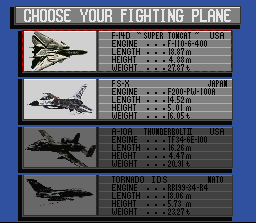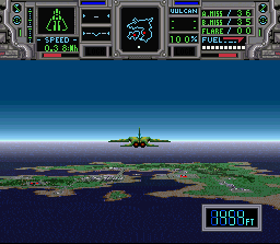 Avec ce jeu, la Snes avait son Ace Combat bien avant la Playstation. Comme dans le hit de Namco, on pilote un avion de chasse vu de derrière (une seule vue disponible) qui doit accomplir plusieurs missions (des combats aériens la plupart du temps) en survolant deux types de paysages : une ville dont on ne distingue que les lumières au loin (on aura beau tenter de s'en approcher pour espérer distinguer quelques détails au sol, ce sera peine perdue, il est d'ailleurs impossible de se crasher) ; et des environnements plus reconnaissables lors de missions de bombardement, comme des îles perdues au milieu du pacifique. Le gameplay est celui d'un jeu d'action rapide et nerveux à la After Burner mais sur une map "ouverte". Les commandes sont L et R pour régler la vitesse, A et B pour lancer des missiles, Y pour tirer au canon et X pour pour les flares. Il faut d'ailleurs utiliser ces derniers dès que le radar indique qu'un ennemi à tiré un missile, puis faire une manœuvre d'évasion en espérant s'en sortir. Après avoir vaincu plusieurs appareils, on affronte un boss plus résistant.