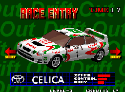 C'est pour cela que j'apprécie d'autant plus ce Neo Drift Out, sorti alors que la 3D s'était déjà imposée. La voiture n'est quasiment jamais orientée vers le bas, et le jeu propose alors un maniement bien plus naturel que les autres titres du genre. Ceci s'explique par le fait que l'on a affaire à de vrais tracés de rally et non des circuits. De plus, idée de génie, pour peu que l'on ne soit pas non plus totalement perpendiculaire à la piste la voiture reprend automatiquement l'axe de la route après que l'on ait relaché le stick à la suite d'un virage réussi. Ce qui fait que le joueur n'a qu'à s'occupper des virages, de l'accélération et à s'amuser à déraper comme un porc.