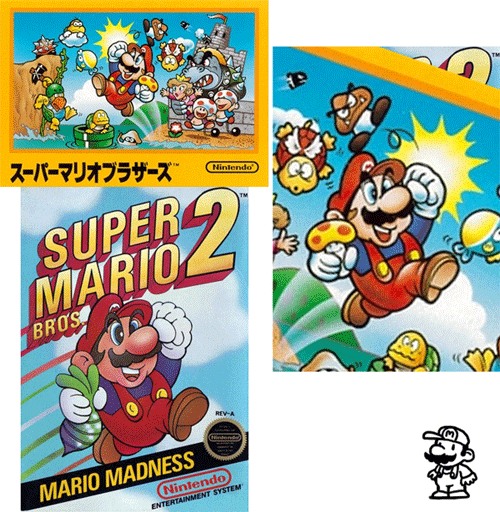 Ils ont pris le mario de la jaquette japonaise de Super Mario Bros pour faire le mario de la jaquette occidentale de Super Mario Bros 2 ! Un peu "cheap" pour un jeu aussi important, non ?