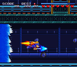 La vrai "suite" de Rocket Knight est le Sparkster de la Megadrive. Personnellement, je considère Rocket Knight sur Megadrive comme le seul vrai chef d'oeuvre de la série. Le Sparkster de la snes est pas mal mais moins subtil, moins finniolé, moins aboutis. quant au Sparkster de la MD je le trouve carrément moins bon (en plus je considère qu'il y a de grosses incohérences scénaristiques). |
