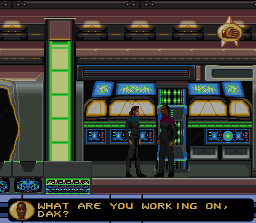 Comme son nom l'indique, ce jeu se déroule dans l'univers de la 3ème série TV Star Trek : Deep Space Nine. On y incarne le commandant Benjamin Sisko qui se trouve dans la station spaciale donnant son nom à la série TV. Cette dernière semble victime d'actes terroristes et Sisko devra dans un premier temps trouver des bombes posées par des ennemis et les neutraliser avant qu'elles n'explosent. Sisko est vu de profil et dispose de d'un panel de mouvements comparable à Prince of Persia ou Flashback. Il peut courir, s'accroupir, bondir, s'accrocher et se hisser aux plate-formes. Il dispose également d'une arme lazer ainsi que d'un scanner lui permettant de trouver des objets cachés dans le décor. Il peut également discuter avec les autres personnages de la série qui se trouvent dans la station spaciale et qui lui donneront des indices, des objets ou de nouvelles missions. Ce jeu n'est clairement pas bon. En plus d'une réalisation en tous points bien en dessous de la moyenne des jeux d'action Snes, il souffre d'une jouabilité moyenne (difficile de bien calibrer ses sauts ou de s'accrocher à une plate-forme directement au dessus de sois) et d'une conception bancale. Ainsi au début il est très difficile de savoir ou aller et l'architecture des niveaux fait que les "trous" entre les plate-formes ne se distinguent pas dans le décor. Bref, à oublier, même pour les fans de Star Trek. Mediocre