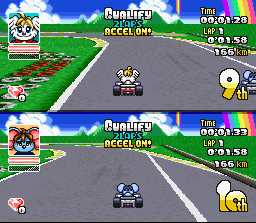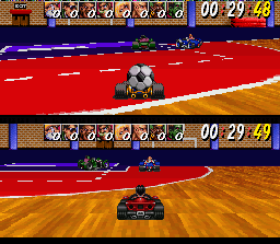 La jouabilité est bonne également, et les 3 niveaux de difficulté assurent un challenge soutenu. Forcément, le titre souffre de la comparaison avec Super Mario Kart : il manque de finition, ses tracés sont moins interessants, ses décors BEAUCOUP moins variés, et son gameplay moins équilibré. Mais ça reste sans aucun doute un bon jeu de course.