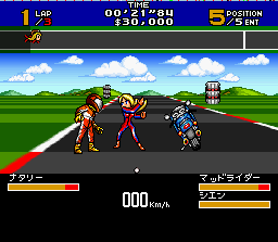 La Megadrive a Road Rash ? Pas de soucis, la Snes accueille Super Mad Champ : lui aussi est un jeu de courses de moto très arcade et vu de derrière dans lequel on peut balancer des coups de pied aux autre concurrents en passant près d'eux. Mais attention car, comme dans le hit d'Electronic Arts, certains sont armés de chaines ou de bâtons. Les courses à disputer sont réparties en 3 championnats pour une vingtaines de circuits au total. Ces derniers ne se déroulent pas toujours sur l'asphalte avec également des routes de terre ou recouverte de glace. Dans les courses avancées apparaissent des tremplins, des flaques d'huile et d'autres obstacles. Chaque victoire rapporte de l'argent qu'on peut dépenser pour customiser sa bécane ou en acheter une nouvelle.