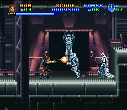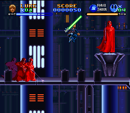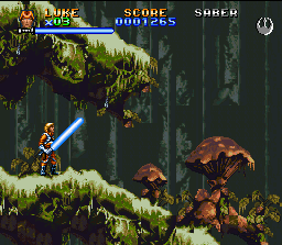 Voici la conclusion de la trilogie de jeux Snes consacrée à Star Wars. Ce dernier épisode ne change pas la recette et utilise toujours comme ingrédient principal des phases d'action / plate-forme efficaces avec des héros vus de profil, saupoudrés de scènes en fausses 3D ou on conduit des vaisseaux comme le Faucon Millenium ou encore les célèbres motos volantes dans la forêt des Ewoks. Malheureusement, le développeur n'est pas parvenu à rendre ces scènes "bonus" plus intéressantes qu'elles ne l'étaient dans les jeux précédents. On se concentrera donc sur les phases d'action/plate-forme dans lesquelles les personnages peuvent toujours sauter, effectuer des double-sauts ou des glissades, et soit frapper avec une arme au contact (le sabre laser pour Luke bien sur), soit tirer dans toutes les directions au blaster. Dès les 1ers niveaux (enfin dès le second, puisqu'on débute avec une phase en mode 7 soporifique qui fait craindre le pire pour la suite) on peut choisir entre plusieurs personnages se jouant un peu différemment.