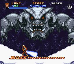Bien que je sois du genre à apprécier les jeux corsés il faut avouer que Super Empire Strike Back est dés le début particulièrement ardu, surtout lors de la première partie mettant en scène Luke dans les profondeurs enneigées de la planète hoth. Toutefois j’ai apprécié l’aspect plus labyrinthique que prennent les niveaux pour obliger le joueur à farfouiller et dégoter les précieux bonus, apportant généralement des upgrades pour la barre d’énergie ou le blaster indispensable pour voir le bout des niveaux. En soit ce titre ne révolutionne pas profondément la formule mais s’avère bien plus long en rallongeant ainsi la durée de vie au point d’apporter un système de password. Cependant même si ces différents éléments apportent un petit plus non négligeable, je trouve que l’on perd un peu le côté immédiat et très bourrin de Super Star Wars qui rend cette suite bien moins jouissive que son prédécesseur. Un titre à essayer si vous appréciez l’univers de Georges Lucas.