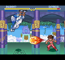 Hiryuu no Ken était un soft mélangeant le jeu de baston en versus et le beat-them-all, bourré de bonnes idées, mais malheureusement déservi par une jouabilité hasardeuse et l'animation saccadée qui caractérise tous les jeux du genre édités par Culture Brain. Ici on reprend les mêmes persos, on en ajoute quelques uns pour un total de 15 combattants qu'on recycle à la mode SD (super deformed : petit corps et grosse tête) et on plonge le tout dans un beat-them-up plus classique à la Street Fighter 2. Cela nous donne un casting très sympathique, coloré et bénéficiant d'un design que je trouve personnellement excellent. Aux karateka asiatiques s'ajoutent un catcheur ressemblant à l'Ultimate Warrior, un sumo, une momie egyptienne, un lion ailé, ou encore un GI américain. Le gameplay est donc celui d'un Street Fighter 2 ou d'un Fatal Fury avec 4 boutons d'attaques, des combos et des coups spéciaux à base de charge et de quarts de tour. Mais le soft apporte quelques petits "plus" (qu'on retrouve pour la plupart dans les jeux SNK à partir de KOF94). Déjà des esquives en arrière plan avec le bouton R, très pratiques. Ensuite la possibilité de contre-attaquer juste après une guarde si on a un bon timing. Enfin, il est possible de bloquer certaines attaques avec une prise d'aikido et d'enchainer avec une chope, ou avec des enchainements plus complexes à condition d'avoir chargé une barre spéciale située sous la barre de vie (on charge en bloquant). On trouve également des super furies qui deviennent disponibles quand le personnage n'a presque plus de vie. La jouabilité est au point avec des persos équilibrés, des attaques qui sortent bien et suffisament de subtilités pour obtenir des combats variés et interessants. Hélas, 3 fois hélas, ce jeu qui aurait pu être excellent se voit handicapé, encore une fois, par une animation horriblement saccadée d'autant plus remarquée que les coups des persos manquent nettement d'étapes d'animation. Donc là, le jeu va clairement diviser : les habitués du genre, exigents sur le "frame-rate" et la précision vont fuir ce titre comme la peste. Les autres en revanche passeront surement un bon moment sur ce titre qui ne manque pas de qualités et qui apporte beaucoup de fun malgré son énorme défaut. C'est mon cas. Etrangement, il n'y a pas de "move-list" sur Gamefaqs mais on trouve un guide très détaillé sur ce lien : http://gamingsanctuary.com/Game_FAQ_SDHNK.html#1CML Assez Bien