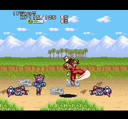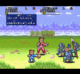 Le jeu que tu cites Gazza est en fait la version occidentale de Super Chinese Land. C'est un épisode différent, exclusif à la GB. Quand à Rudolf, il parle soit de la compile Super Chinese Land 1-2-3 qui est une compile des 3 épisodes GB sur GB, soit de la compile Super Chinese 1-2 qui est une compile des 2 épisodes Famicom (et non Super Famicom) sur GBA. Bref ... Revenons en au volets Super Famicom de cette saga dont il est décidément bien complexe de dresser l'inventaire (en plus les jeux ont des noms vraiment différents en fonction des localisations ...) Super Chinese World 2 (Culture Brain - 1993)