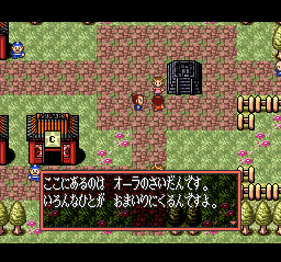 Sorti sous le nom de Super Ninja Boy en US, le 1er épisode de Super Chinese World sur Snes fait partie d'une plus grande série de jeux commencée avec Chinese Hero en arcade et qui s'est ensuite poursuivie sur Nes. Le gameplay de cet épisode est un mélange de J-RPG, de beat-them-all et de jeu de plate-forme, rien que ça ! L'histoire raconte comment des extra-terrestres viennent menacer un royaume fictif de la Chine ancienne en faisant croire qu'ils apportent la paix. On commence par explorer un monde en vue de dessus, comme un RPG, avec dialogues dans les villages et combats aléatoires sur la carte et dans les donjons. Lorsqu'on pénètre dans une demeure, des dialogues s'en suivent et sont illustrés par des portraits des personnages dans des petites fenêtres. C'est ainsi que se déroulent aussi les achats dans les magasins. Les combats aléatoires quand à eux donnent lieu à des séances de beat-them-all : on est vu de profil et on se déplace librement, y compris en profondeur. On peut sauter, frapper et projeter les ennemis. Attention aux précipices qui se trouvent dans le décor, mais on peut également les utiliser à notre avantage en y jetant ses adversaires. Ces combats permettent de trouver des objets dans le décor mais aussi de gagner des points d'expérience et de l'argent. Enfin, certaines rencontres déclenchent des phases de plate forme avec persos vus de coté, scrolling horizontal, sauts à bien négocier, possibilité de s'accrocher aux murs ... etc ... Question variété, on est donc servis ! Et toutes ces phases sont jouables à 2 simultanément, ce qui est appréciable. On peut même commencer l'aventure seul et passer en mode 2 joueurs après avoir parlé à un perso dans un village (et inversement bien sur). Que du bon alors ? Pas vraiment. La réalisation est très minimaliste et fait très "8 bits" et surtout la jouabilité n'est pas optimale. C'est trop lent, les collisions sont un peu hasardeuses, les combats aléatoires sont bien trop fréquents ... etc ... On sent le jeu "petit budget" qui tente d'en offrir plus que les "gros jeux" de l'époque. Et c'est un peu ça qui fait son charme. Les défauts s'effacent quelque peu devant l'originalité du concept et la diversité de l'action, d'autant qu'on tombe de temps en temps sur des mini-jeux (un memory pas exemple), qu'il y a pas mal de secrets à découvrir, d'équipements et de magies à obtenir ... etc ... Bref, un petit jeu très sympa, dommage que ses suites n'aient pas été traduites. Assez Bien