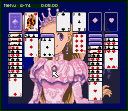 Trump Island est l'adaptation japonaise de Super Solitaire. Si on y retrouve les mêmes 12 variantes de jeu et la même interface (avec gestion de la souris), l'habillage en revanche n'a rien à voir ! Ici les couleurs explosent, et les fonds d'écran soit sobres soit un peu ringuards de l'original sont remplacés par de jolies filles échapées de manga qu'on retrouve également dans les menus, et elles poussent des "yatta" avec leur petite voix digitalisée quand on gagne une partie ! Ca c'est de la localisation ! C'est donc (à mon gout) plus sympa à regarder et à jouer. MAIS, mieux vaut déjà connaitre les règles puisque tous les textes sont en japonais. Assez Bien