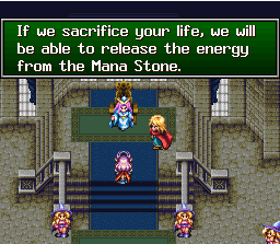 Enfin, abordons LE point qui a fait la légende de ce soft : sa réalisation. Ca claque ! Certainement l'un des plus beaux jeux de la machine avec des couleurs flamboyantes, un dessin détaillé et une patte artistique qu'on ne peut qu'admirer. Les musiques sont également très bonnes, bien que moins marquantes que dans Secret of Mana. Je ne peux qu'être d'accord avec LVD, Seiken Densetsu 3 est surement l'un des plus beaux jeux de la SFC aux côtés de Yoshi's Island et Bahamut Lagoon, la finesse des sprites est dignes d'une 32 bits, la direction artistique avec l'utilisation des nuances des couleurs chatoyantes, l'alternance jour/nuit qui donne lieu à des paysages aux dégradés à tomber par terre. Surement la plus grande claque graphique sur la SNES. Et personnellement, je trouve que les musiques de SD3 sont bien meilleurs que ceux de Secret of Mana, les mélodies sont vraiment jolies et entraînantes, et font plus RPG que ceux de SOM qui faisait assez arcade quand même. Quel dommage que cette saga n'a pas réussi à perdurer sa magie avec ses autres suites, la beauté du monde de Mana donnait un cachet unique à cette série. Et puis rien que pour Kikuta, Secret of Mana et Seiken Densetsu 3 valent la peine : _________________