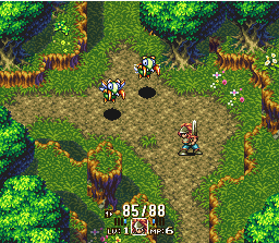 Le 1er Seiken Densetsu est sorti sur Gameboy et fut publié en Europe sous le titres de Mystic Quest. Cette suite renommée Secret of Mana est indépendante mais reprend certains éléments du jeu original dans l'histoire et dans le système de jeu. Dans ce titre qualifié de "action-RPG", on dirige un jeune garçon vu de dessus dans un monde médiéval-fantastique bénéficiant d'un design joyeux et coloré. Un jour le jeune garçon trouve une épée près d'une cascade et, en s'en emparant, devient le porteur de "l'épée-Mana", une arme issue d'une ancienne civilisation qui sauva le monde autrefois. Il devra voyager pour redonner sa puissance à cette arme car une nouvelle menace se prépare. Gros succès (mérité) sur Snes, y compris en occident et malgré une traduction en demi-teinte, Secret of Mana est à la base un RPG avec ses codes habituels : dialogues et achats dans les villages, combats en extérieur et dans les donjons, progression à base de points d'expérience et nombreuses armes et pouvoirs magiques à utiliser. Mais les combats se font en temps réel, avec des déplacements totalement libres comme un jeu d'action. On le compare donc avec Legend of Zelda sur la même console, mais le feeling est totalement différent. Ici, il y a très peu (quasiment pas) de puzzles, d'enigmes ou de choses cachées à découvrir. L'histoire est plus complexe (dans le sens ou elle implique plus de protagonistes, de lieux et d'événements). Et surtout les combats sont incessants et au coeur du gameplay. Comme Rudolf l'avait fait remarquer ici même, ces derniers ne sont pas tant que ça différents d'un RPG à la Final Fantasy puisqu'on doit attendre le remplissage d'une barre d'action pour frapper efficacement et parce que les magies "cassent" l'action et sont imparables. Le coeur du système tourne autour de la découverte et de l'utilisation de diverses armes (épée, lance, hache ...) qui sont plus ou moins efficaces en fonction de la situation et qu'il faut rendre plus puissantes en les utilisant de façon répétée. Ce jeu se distinguait à l'époque par 2 charactéristiques : d'abord une réalisation charmante grâce à un usage des couleurs très efficace sans que les graphismes soient pour autant renversants, des effets spéciaux bien implémentés (brouillard dans la forêt hantée, mode 7 quand on survole un continent ...) et des musiques souvent magnifiques. Ensuite, le jeu est jouable à 3 simultanément, ce qui n'était pas commun (et ne l'est pas plus maintenant) pour le genre. En effet, le héros rencontre rapidement 2 autres protagonistes qui peuvent être dirigés pendant les combats par le CPU (avec un menu permettant de régler leur attitude) ou par d'autres joypads. Après toutes ces années, que reste-t-il de Mana ? Eh bien un jeu toujours agréable, bénéficiant d'une bonne jouabilité, et surtout d'une ambiance chaleureuse qui donne envie de progresser. Les nombreux combats qu'on doit s'imposer afin de monter en niveau et d'être de taille face aux boss rend certes la progression répétitive, mais pas plus que l'enchainement de combats aléatoires dans un Final Fantasy. Perso, j'aime beaucoup. Tres Bien Pour en savoir plus, lire l'article de GP : http://www.grospixels.com/site/seiken.php Secret of Evermore (Square Soft - 1995)