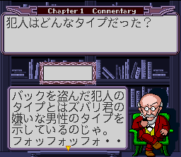 Ne payez plus une fortune pour vous faire psychanalyser ou consulter une voyante : The Shinri Game est là pour ça. D'abord vous répondez à une série de questions réparties dans plusieurs catégories, chacune bénéficiant d'illustrations moyennement jolies et certaines vous mettant dans des situations de la vie quotidienne et vous demandant de prendre des décisions, d'autres vous demandant de faire des choix permettant de définir vos attitudes. Ensuite un psy ressemblant à une caricature de Freud dresse votre profil psychologique. Vous pouvez également faire une série de question en duo, chacun son tour, et c'est alors un profil de compatibilité amoureux qui sera établi. Enfin, en bonus, on trouve un "omikuji", des prédictions (très vagues) écrites sur des papiers qu'on tire au hasard dans une boite en bois dans les temples japonais. Et grâce à l'argent économisé en n'allant plus voir votre psy, vous pourrez vous payer les cours de japonais indispensables à la compréhension de ce soft ... Shinri Game 2 (The) : Magical Trip (Visit - 1995)