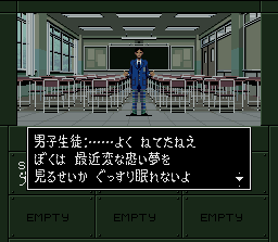 Cet épisode de la célèbre série de RPG en vue subjective raconte une histoire se déroulant en marge des évènements décrits dans les 2 premiers Shin Megami Tensei. Un lycée de Tokyo, à notre époque, se retrouve mystérieusement téléporté dans le monde des démons. Après une phase de création de personnage ou on doit répondre à une série de question (la 1ère étant "aimez vous les jeux-video ?" !), on incarne un étudiant, à l'intérieur de l'école, qui doit découvrir ce qui se trame et évoluer dans ce monde étrange. L'interface et la réalisation sont identiques à Shin Megami Tensei 2. En fait, ça semble au premier coup d’œil être exactement le même jeu avec des décors et des personnages différents. Cependant le gameplay dispose d'une petite nouveauté avec la présence d'ange-gardiens qui viennent modifier les caractéristiques de nos personnages quand ils meurent. Pour le reste il s'agit toujours d'un mélange de RPG et de jeu d'aventure, avec beaucoup de personnages, de rencontres et de dialogues, et le fameux système permettant de recruter des démons dans son équipe en leur parlant. Le soucis, c'est que cet épisode n'est pas traduit. Dommage car l'histoire et l'ambiance semblent réussis une fois de plus. Mais bon, on a déjà de quoi faire avec les 2 premiers Shin Megami Tensei ...