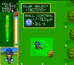 Ce jeu de golf aux graphismes mignons met en scène le personnage de Dorabocchan, un petit vampire qu'on a déjà vu dans d'autres jeux vidéos de l'éditeur, dans deux modes de jeu distincts. Le mode "Naxat Open" est en fait un jeu de golf classique, vu de dessus, ou il faut arrêter un curseur sur une jauge de puissance au bon moment pour frapper le plus efficacement possible tout en choisissant le club de golf adéquat et en prenant en compte la force et la direction du vent. C'est exactement la même chose dans le mode Dorobocchan mais ce dernier permet également d'utiliser des cartes magiques qu'on gagne à la fin de chaque parcours. Elles peuvent se jouer avant chaque coup et vont provoquer un effet spécial comme dévier sa balle à 45 degrés, permettre de contrôler plus précisément sa trajectoire, ou bien handicaper la frapper de l'adversaire. Le jeu est assez bien réalisé, et facile à prendre en main, quoique les trajectoires prises par la balle surprennent parfois (même dans le mode "normal"), et je soupçonne donc ce titre de cacher quelques subtilités. Malheureusement les textes exclusivement en japonais rendent l'emploi des pouvoirs et la navigation dans les menus un peu difficiles. A essayer pour les amateurs de jeux de golf, ce genre étant peu enclin à proposer un peu de fantaisie. Moyen