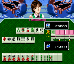 Le deuxième épisode de cette sympathique série de jeux de mahjong continue sur sa lancée avec une présentation très soignée et des menus richement illustrés, présentant souvent de bien jolies demoiselles. Au rayon des nouveautés on trouve des leçons permettant de se familiariser avec les règles du mahjong et les diverses combinaisons (en japonais malheureusement), et plein d'écrans de statistiques sur les différents joueurs présents dans le jeu. Plus insolite, on a aussi un quiz à propos de lieux célèbres du japon (rien à voir avec le mahjong) et on peut aller dans un café pour discuter avec les autres joueurs du jeu. Il est toujours possible de jouer contre 2, 3 ou 4 adversaires avec des vues différentes et des graphismes plus jolis. Super Nichibutsu Mahjong 3 (Nichibutsu - 1994)