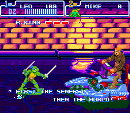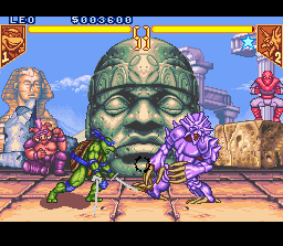 Teenage Mutant Ninja Turtles 4 : Turtles in Time (Konami - 1992) Ce soft est adapté librement du second beat-them-all Konami sorti en arcade dans lequel on incarne les Tortues Ninja. Les différences avec la borne sont toutefois assez nombreuses, avec quelques niveaux différents, des ennemis en plus et un gameplay légèrement modifié, Il existe aussi une version Megadrive, sortie sous le nom de Hyperstone Heist et qui est une adaptation encore plus libre de la version arcade, avec des niveaux totalement remaniés ![]()