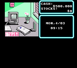 Sinon il y a deux jours j'ai testé Rad Racer avec les lunettes relef, merci à Chatpopeye pour l'info! Ma compagne est rentré ce soir là à 20h30 de son conseil de classe, et elle m'a trouvé avec mes deux enfants tous chaussés de lunettes bleu/rouge, plantés devant la télé qui diffusait les images d'un jeu NES de 1987 clignotant comme un beau diable. cela dit je pense toujours le plus grand bien de ce jeu. Ce soir j'ai encore un peu testouillé, je vais passer pour un boulet mais j'ai enfin compris la base du gameplay de Kirby: en appuyant en bas on acquiert le pouvoir d'un ennemi gobé!!! Oui je sais je suis un boulet, je me demandais ttoujurs quel était l'intérêt de ce jeu pourtant adulé, maintenant que j'ai compris je vais enfin pouvoir me faire une idée juste. Qu'est ce qu'il est beau d'ailleurs ce jeu! Pour les curieux de nature, je conseillerais de lancer la rom Wall street kid. Je ne l'ai fait tourner qu'une poignée de minutes, mais je ne pensais pas que des jeux de ce genre existaient, une sorte d'aventure graphique ou l'on doit faire fructifier sa petite fortune perso. A creuser tellement l'idée est con.