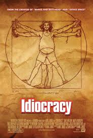 Le pitch d'Idiocracy : Joe, un militaire, et Rita, une prostituée, sont choisis pour faire office de cobayes dans un programme de cryogénisation. Mais ce qui n'était qu'une expérience de routine tourne mal, et ils se réveillent 500 ans plus tard, dans un monde où le QI moyen à dégringolé : les gens ne sont plus préoccupés que par le sexe, la consommation et la violence, le président des USA est une ancienne Porn Star, son secrétaire d'état à la défense a été désigné suite à un concours, et le film le plus populaire est "Ass", soit 1h30 de plan fixe sur un cul (le film a gagné l' Oscar du meilleur scénario). Joe et Rita, qui étaient parfaitement dans la moyenne, sont maintenant l'homme et la femme les plus intelligents du monde.