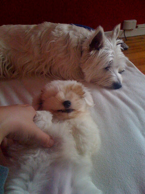 Ah, pas plus tard qu'hier, mes parents ont ramené une chatte maine coon noire, assez jolie (elle est encore petite). Ca doit faire presque 15 ans qu'on n'a plus eu de chat à la maison et que mon père n'osait plus en avoir un (alors qu'il adore les chats) à cause de son dernier chat persan (très beau mais très con) qui griffait ses (milliers de) livres et qu'il avait fini par donner à ma grand-mère. Mon père est aux anges en tout cas. Et ça ne semble pas trop mal se passer avec la chienne (qui finira par être plus petite que la chatte ^^) qui est de tempérament jaloux à défendre son territoire.