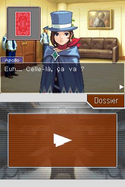 L'idée, en soi, est sympathique. Son application, en revanche, est sujette à défaut : car non seulement l'on vous indique quand il faut l'utiliser, mais en elle-même je ne vois rien qui n'aurait pu être pris en charge par la commande « Attaquer », toujours présente du reste. Enfin, les deux grandes qualités des Ace Attorney, à savoir l'écriture et les procureurs souffrent également de grandes inconstances pour qui a été habitué au génie des épisodes précédents. Commençons par les scénarios des quatre épisodes : ils ne brillent ni par leur originalité, ni par leur intelligence ou, du moins, j'y ai été relativement insensible. Le fait qu'ils soient tous plus ou moins connectés, comme je l'ai dit plus haut, afin de réhabiliter Phoenix Wright amène à des circonvolutions étranges pour tout faire rentrer dans le tableau, et j'avoue que j'ai eu du mal à me passionner à résoudre les différents cas. Du reste, le jeu est bien trop facile pour un initié tout comme pour un débutant, et se termine sans mal.