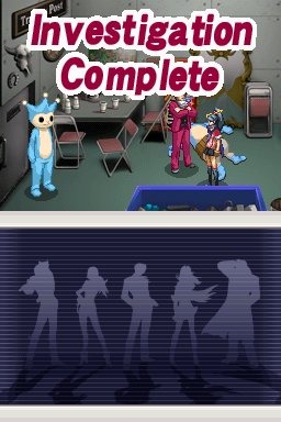 Troisièmement et non des moindres, la difficulté est inexistante. Je n'irai pas jusqu'à dire que les autres Ace Attorney étaient difficiles, bien loin s'en faut. Mais il leur arrivait souvent de nous demander quelques génuflexions pour arriver à nos fins et nous de nous demander que faire pour progresser. Ici, étant donné que toute partie de l'enquête est strictement cloîtrée et séquencée comme du papier à musique, il n'y a aucune place au flottement. Il est tout de même paradoxal de voir qu'un épisode qui nous promet d'avoir une plus grande liberté d'action nous enferme plus que jamais dans un moule prédéfini et bien plus coercitif que n'importe quelle phase des quatre autres épisodes. De plus, le jeu nous indique constamment que faire, quel objet montrer à qui, là où il faut observer davantage... Décourageant, et éliminant par là même toute notion de réflexion. L'on pourrait également citer dans les défauts du jeu une propension au « fan-service » en faisant apparaître les personnages marquants des jeux précédents de façon continue, traduisant peut-être un manque d'inspiration... mais je me suis déjà acharné sur ce jeu, donc je tairai cela.